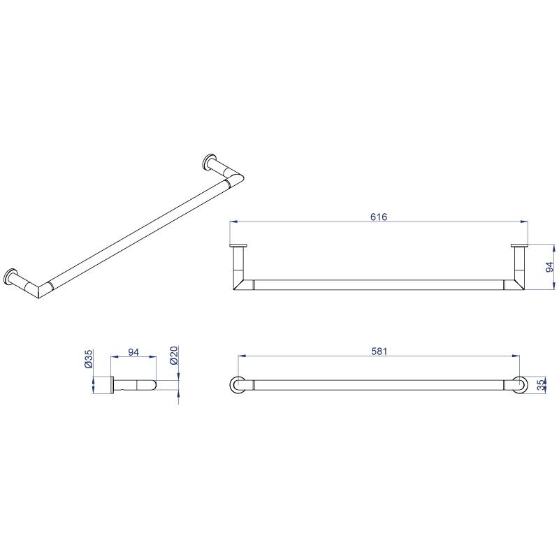 —Полотенцедержатель AZARIO FORNY трубчатый одинарный 60 см, хром (AZ-88301)