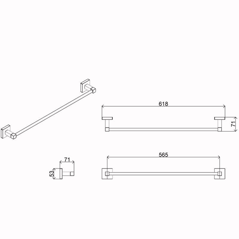 —Полотенцедержатель AZARIO RINA трубчатый одинарный 58 см, хром (AZ-87001)