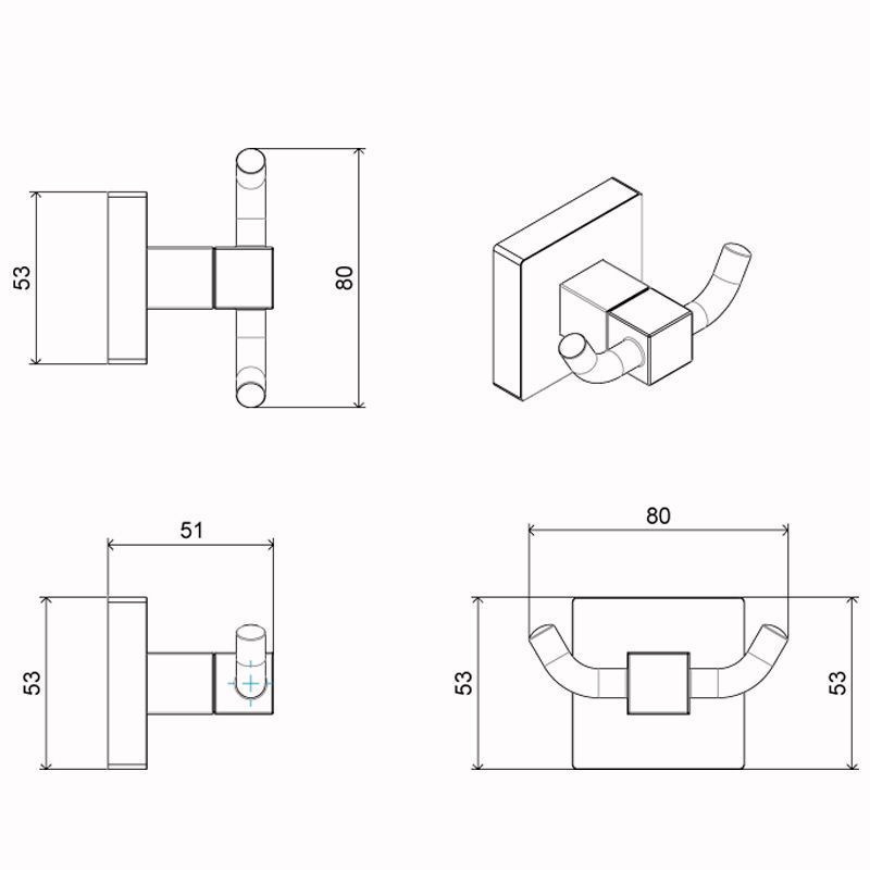 Крючок двойной AZARIO RINA, хром (AZ-87005B)