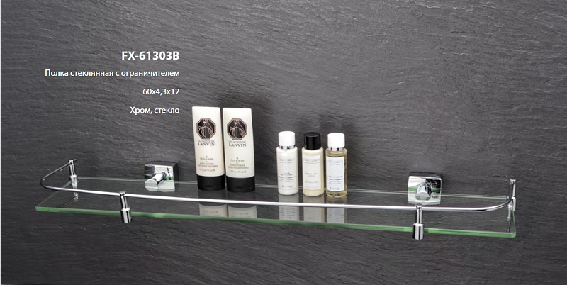 —Полка стеклянная Fixsen Kvadro, хром (FX-61303В)