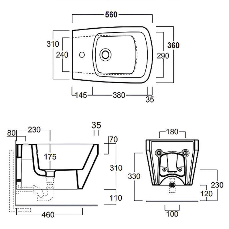—Биде подвесное Simas Baden Baden 360х560х310 с 1 отв под смеситель, с креплением F85, цвет белый (BB19bi*1)