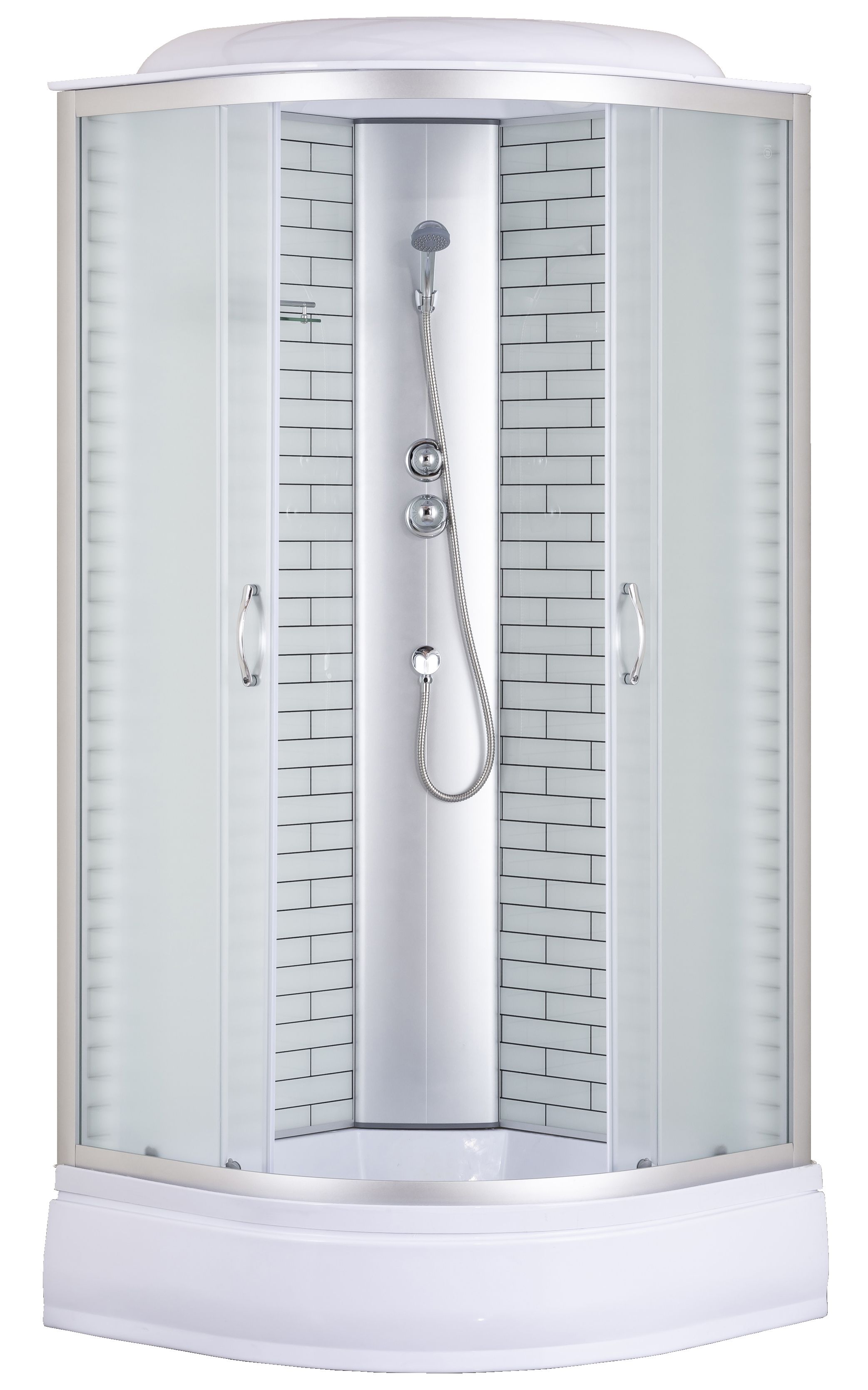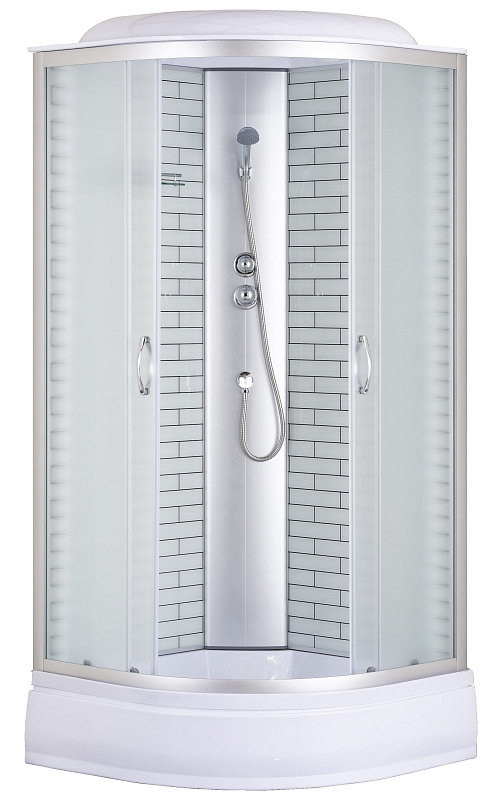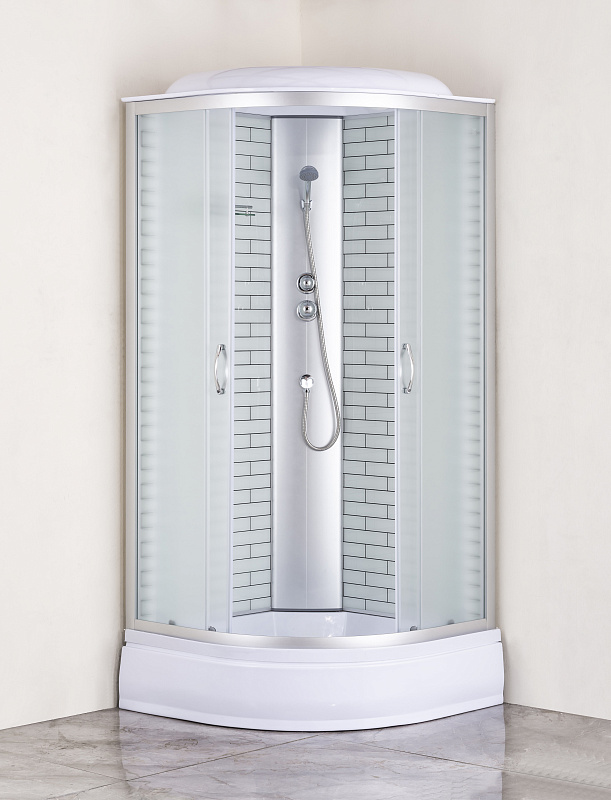 —Душевая кабина Loranto 100х100х215 поддон 25 см, белый кирпичный узор, стекло 4 мм, профиль хром (CS-6610-25FW 100)