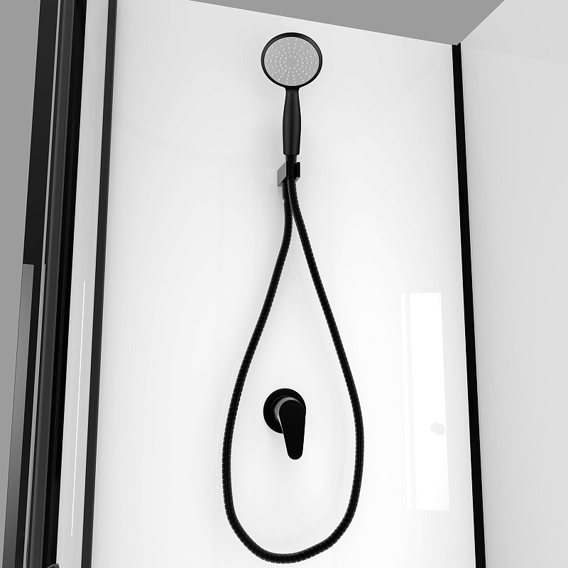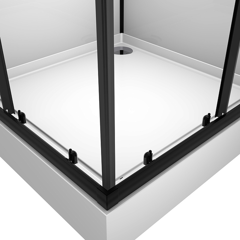 CS-21801Душевая кабина 90x90x(190+15)см c низким поддоном 15см, прозрачное закаленное стекло 5 мм, задние стеклянные стенки БЕЛЫЕ, профиль черный-мат., черный ручной душ + шланг для душа + черный держатель (3 места)