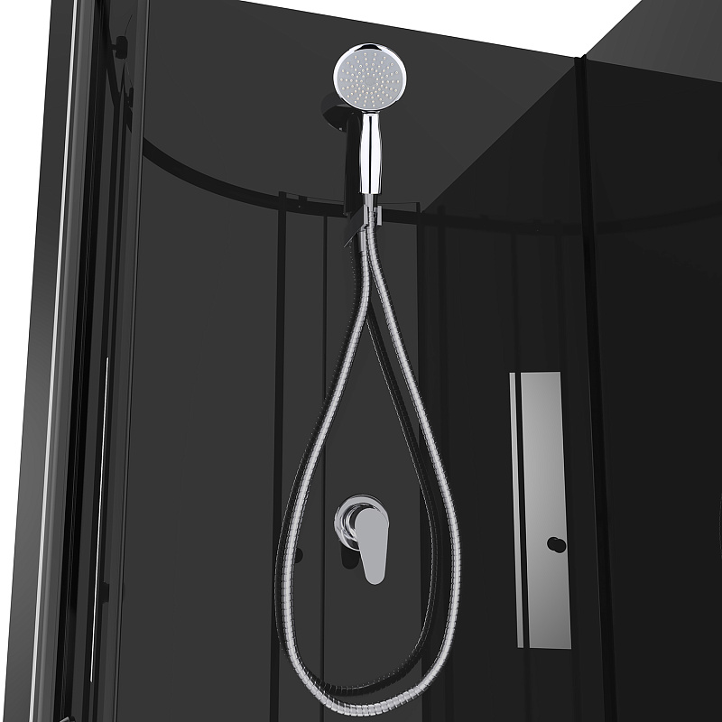 CS-21801BP Душевая кабина 90x90x(190+15)см с низким поддоном 15см, прозрачное закаленное стекло 5 мм,задние стеклянные стенки ЧЕРНЫЕ, профиль черный-мат., хромированный ручной душ + шланг для душа + хромированный держатель (3 места)