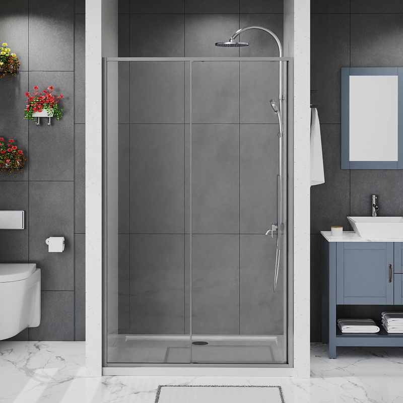 Душевая дверь Azario SHANGHAI 1100х1950 раздвижная, прозрачное стекло 6 мм, профиль матовый графит (AZ-Y43-110-MGR-CL)