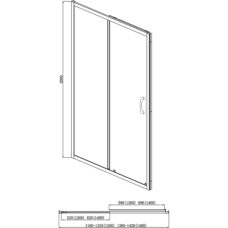 —Душевая дверь Azario MILTON раздвижная 140х200, толщина полотна 6мм универсальная, цвет профиля серебро
