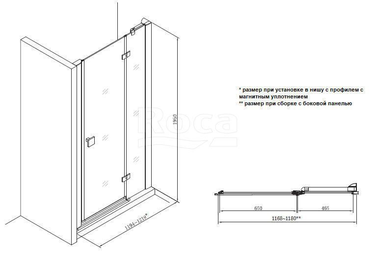 —Душевая дверь Roca METROPOLIS распашная 120х195, толщина полотна 8мм универсальная, цвет профиля хром