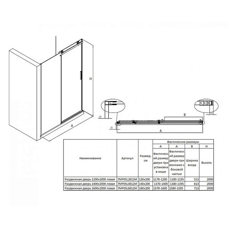 —Душевая дверь Roca AREA раздвижная 160х200, толщина полотна 8мм левая, цвет профиля хром