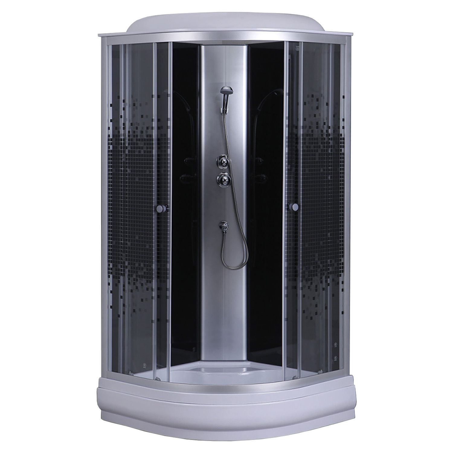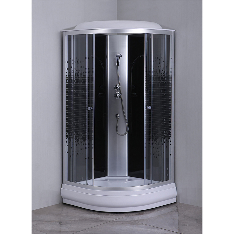—Душевая кабина Loranto 90х90х215 поддон 13см, черный мозаичный узор, прозрачное стекло 4мм, профиль хром матовый (CS-6690-13K 90)