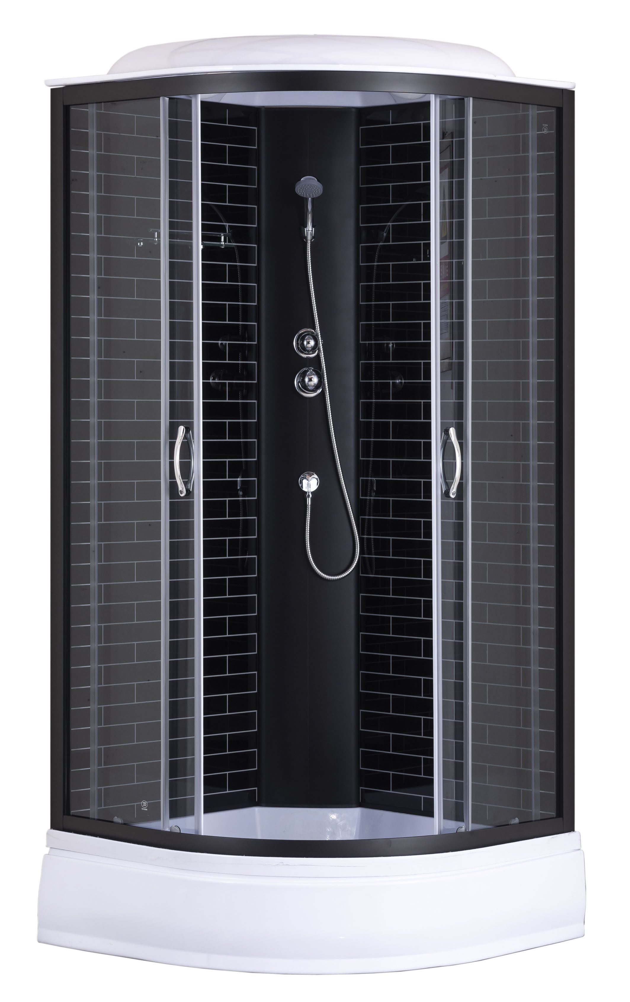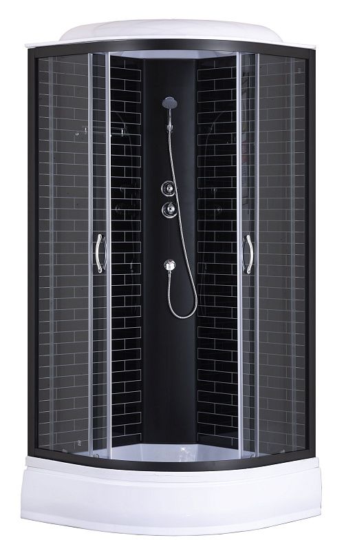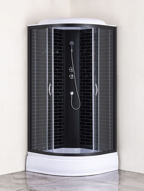—Душевая кабина Loranto 100х100х215 поддон 25 см черный кирпичный узор, серое стекло 4мм профиль черный (CS-6610-25GB 100)