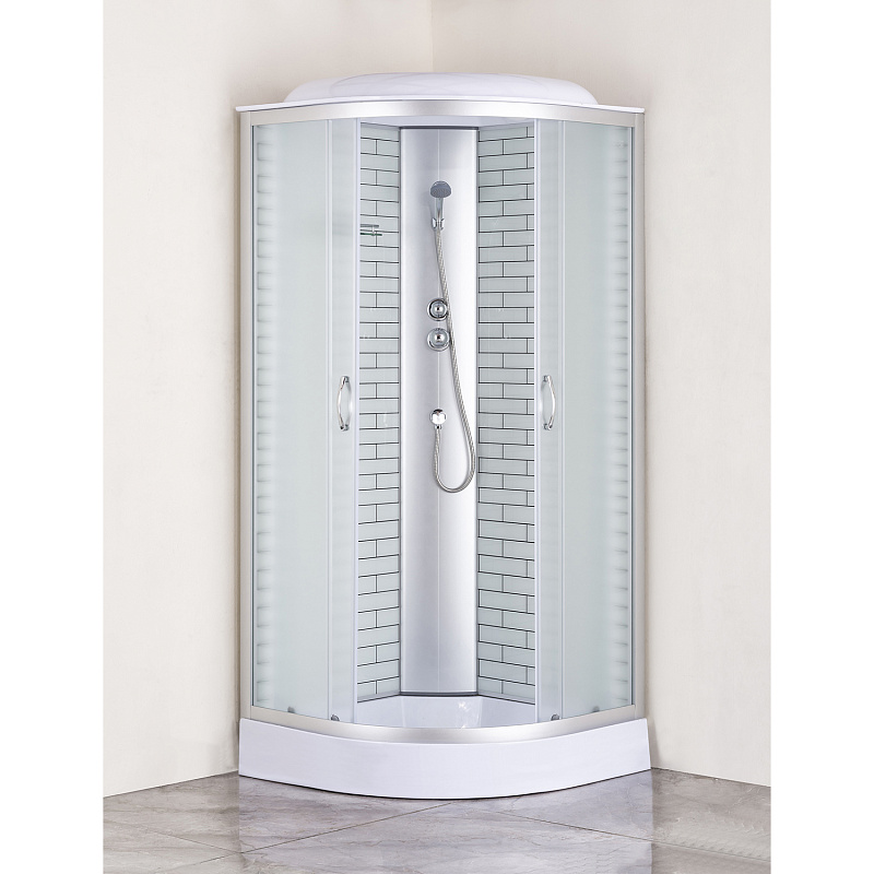 Душевая кабина Loranto 90х90х215 поддон 13см, белый кирпичный узор, матовое стекло 4мм, профиль хром (CS669013FW90)