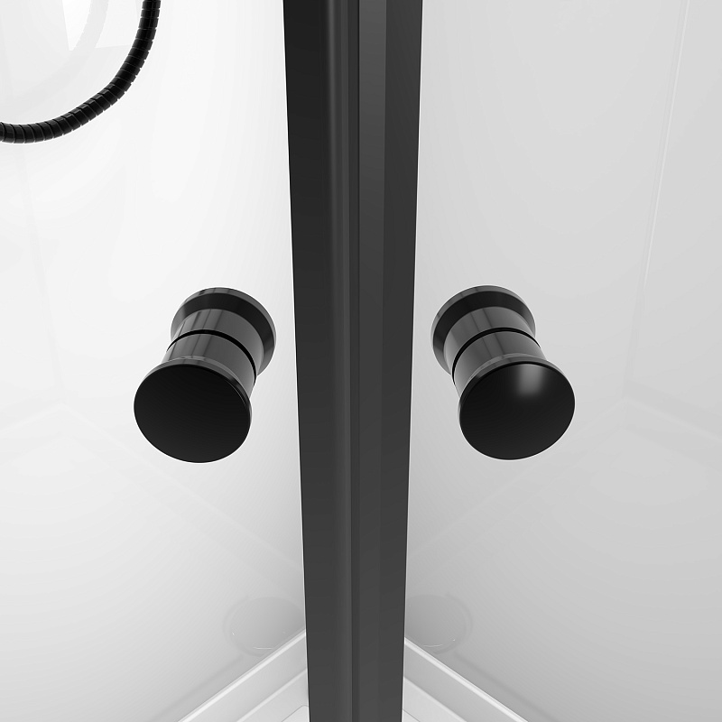 CS-21800-100 Душевая кабина 100x100x(190+15)см с низким поддоном 15см, прозрачное закаленное стекло 5 мм, задние стеклянные стенки БЕЛЫЕ, профиль черный-мат., черный ручной душ + черный шланг для душа + черный держатель (3места)