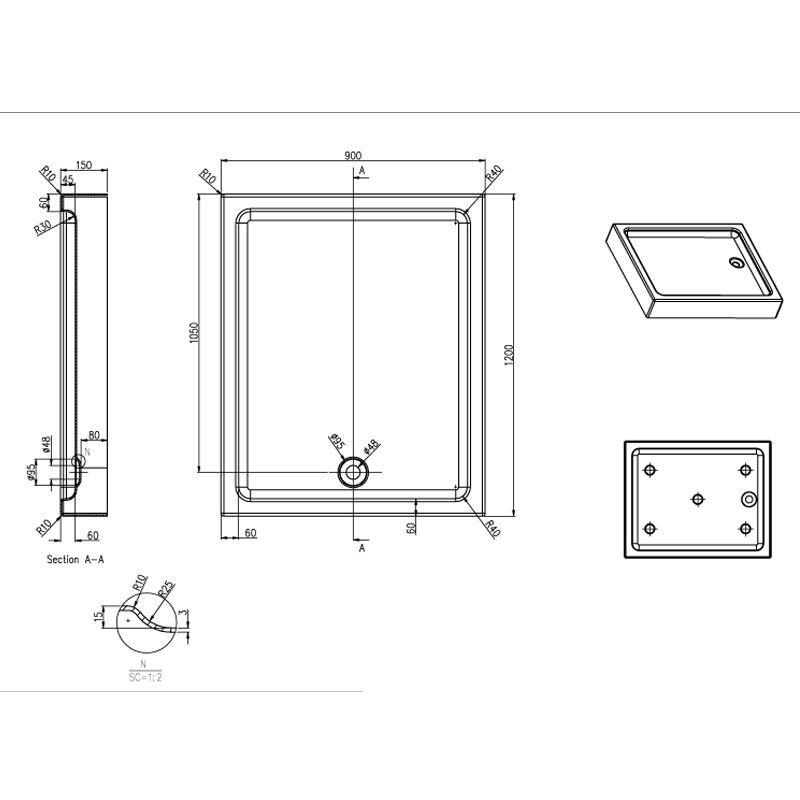 —Душевой поддон Azario 900х1200х150 R/L, для ONTARIO 1231 900