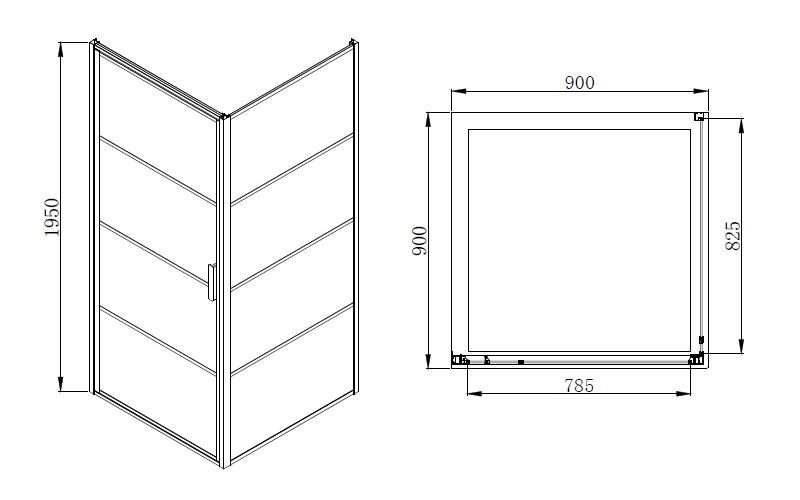 —Душевое ограждение Azario RICHMOND 900х900х1950, без поддона, прозрачное стекло 6 мм, цвет профиля черный (AZ-NAG1221 900 BLACK)