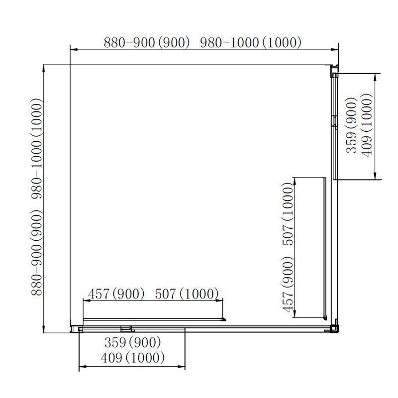 —Душевое ограждение AZARIO 1000х1000х2000, БЕЗ ПОДДОНА, прозрачное стекло 6 мм, цвет профиля черный (AZ-ND1142 1000 Black)