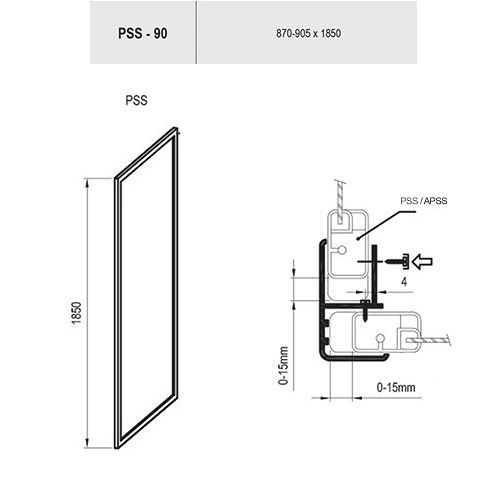 —Неподвижная душевая стенка Ravak Supernova PSS-90, профиль белый, цвет стекла "Водная зябь"