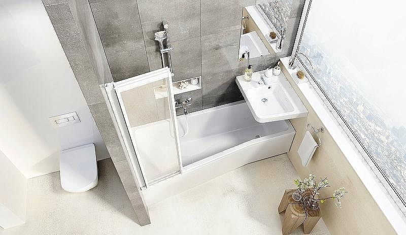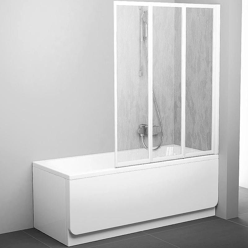 Шторка на ванну Ravak Behappy VS3 100 профиль Белый витраж пластик Rain (795P010041)