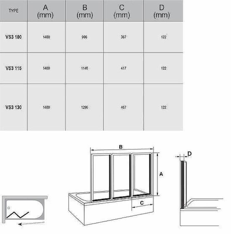 Шторка на ванну Ravak Behappy VS3 100 795P010041. Характеристики: