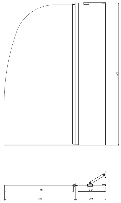 Шторка для ванны, частично складная, без поручня.