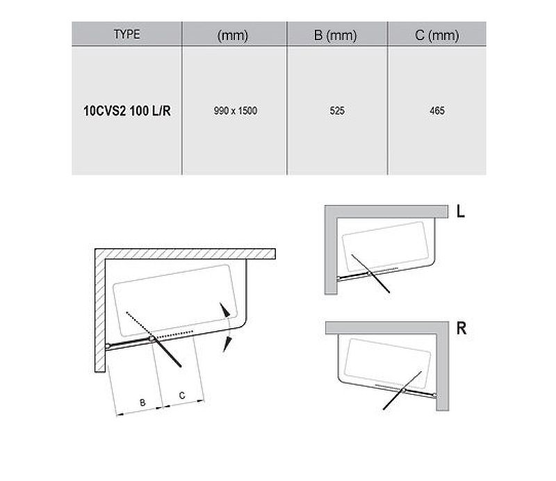 Шторка на ванну Ravak 10° CVS2-100 100х150 L 7QLA0103Z1.