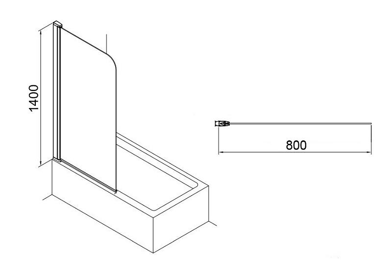 Шторка для ванны Azario MERRIT 800х1400 прозрачное стекло 6 мм, покрытие EASY CLEAN, цвет профиля серебро (AZ-NF6310 800)