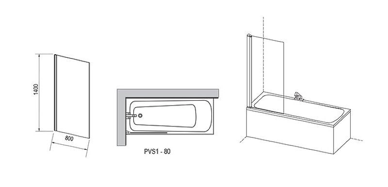 Шторка на ванну Ravak Pivot PVS1-80 стекло Transparent,  профиль Черный (79840300Z1)
