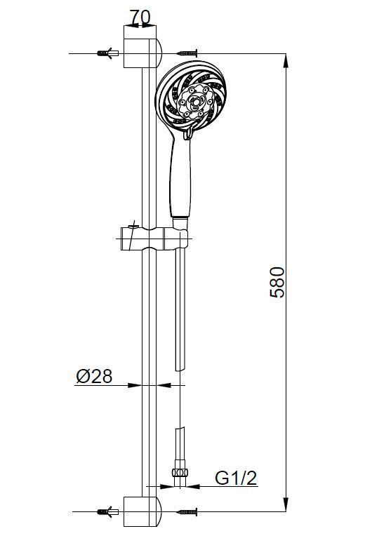 —Душевой набор AZARIO MANO: душевая лейка, шланг, штанга, хром (AZ-15782010)
