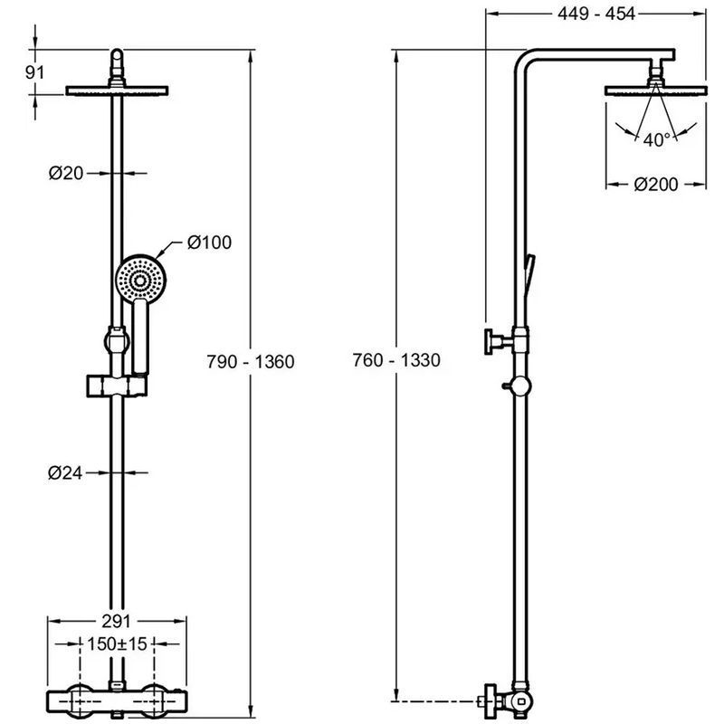 Удобный переключатель, расположенный над смесителем, позволяет легко переключаться между верхним и ручным душем.