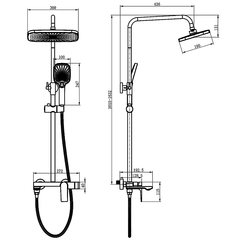 —Душевая система Azario Arida с квадратным тропическим душем, керамический картридж, шланг 150 см, черный матовый (AZ-K2354B)