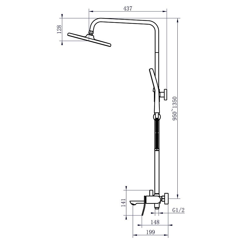 Размер ручного душа,мм