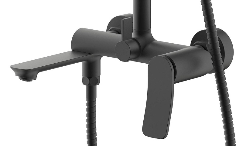 —Душевая система Azario Escaro с квадратным тропическим душем, керамический картридж, шланг 150 см, черный матовый (AZ-K2374B)