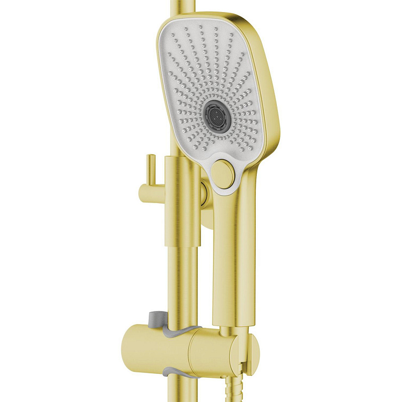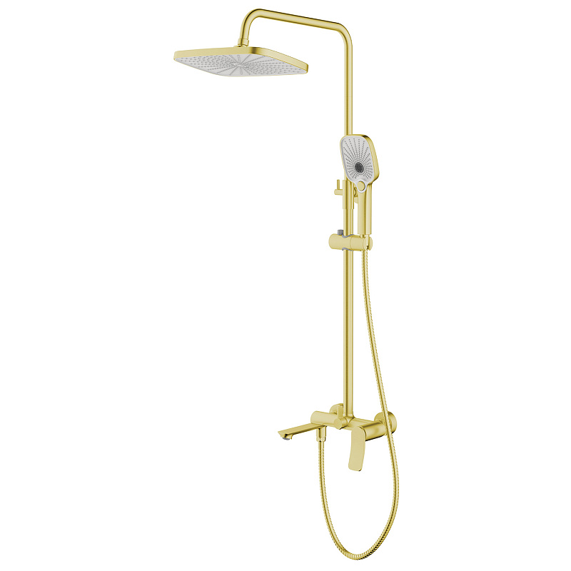—Душевая система Azario Escaro с квадратным тропическим душем, керамический картридж, шланг 150 см, золото матовое (AZ-K2374MG)