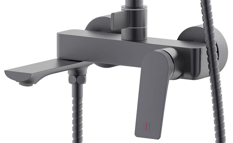 —Душевая система Azario Ларси с квадратным тропическим душем, керамический картридж, шланг 150 см, графит (AZ-K2349GR)