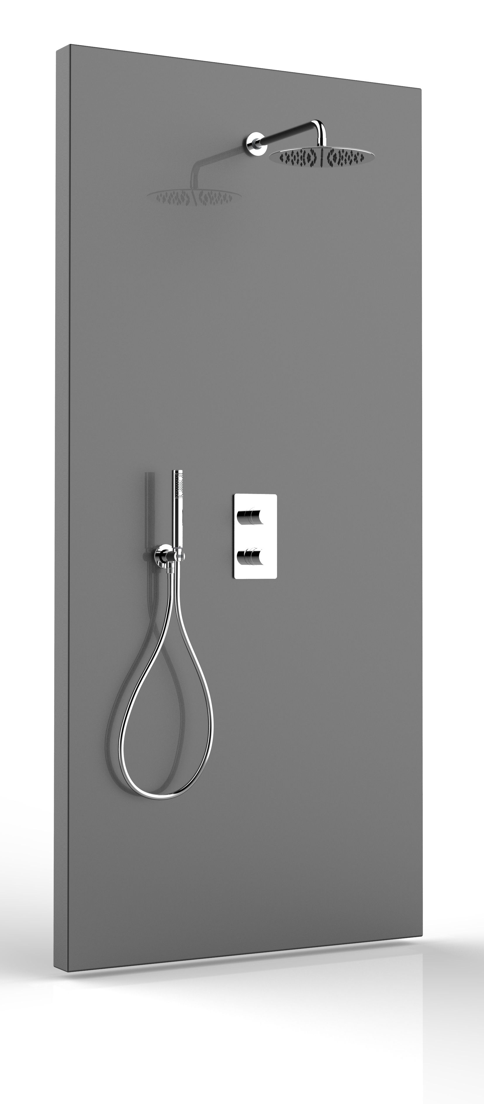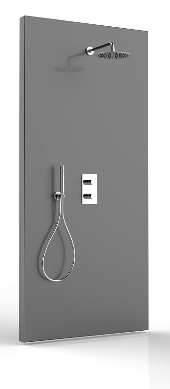 —Душевой комплект Bossini TETIS: смеситель на 2 выхода, верхний душ Ø 250 мм, ручной душ ZEN с водорозеткой, шланг 150 см, цвет хром (M00761.030)