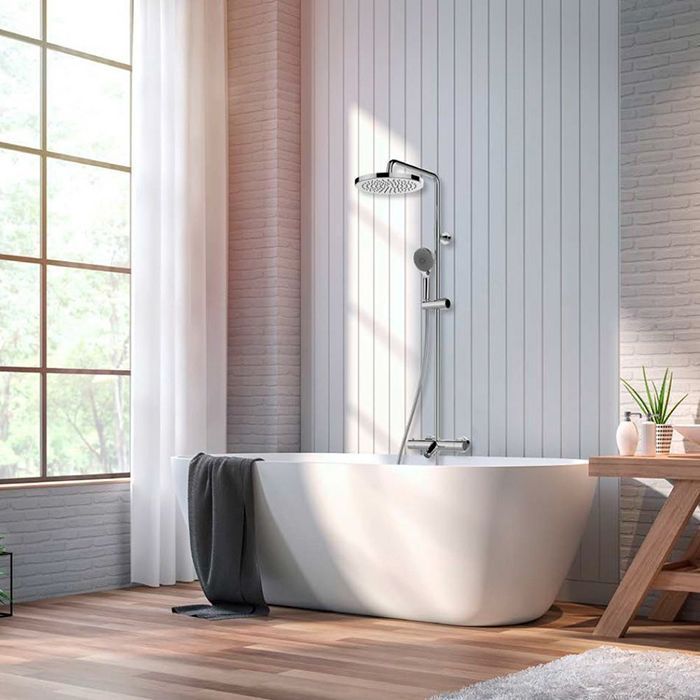 —Душевая стойка Bossini ELIOS с термостатическим смесителем для ванны, верхний душ Ø250 мм., ручной душ, цвет хром (L10402.1.030)