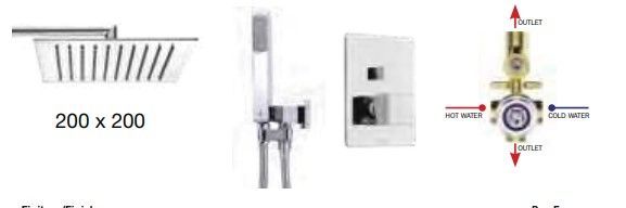 —Душевой комплект Bossini TETIS: смеситель на 2 выхода, верхний душ 230x230 мм, ручной душ CUBE с водорозеткой, шланг 150 см, цвет хром (M00763.030)
