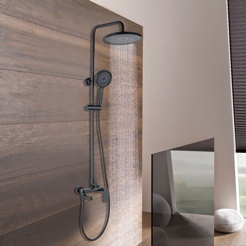 —Душевая колонна Azario ARIZONA со смесителем для ванны, с поворотным изливом, круглая, черный (AZ-20BR)