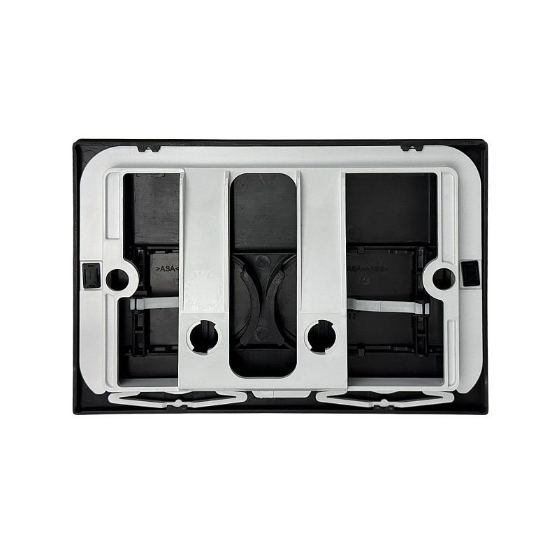 Компактная панель управления сливом (размеры: 24х16 см, глубина 1 см) идеально дополнит инсталляцию Azario. Модель выполнена в классическом сочетании: прочная рамка из ударопрочного пластика и кнопки из нержавеющей стали. Такое решение обеспечивает долговечность, устойчивость к коррозии и современный «металлический» акцент в ванной.