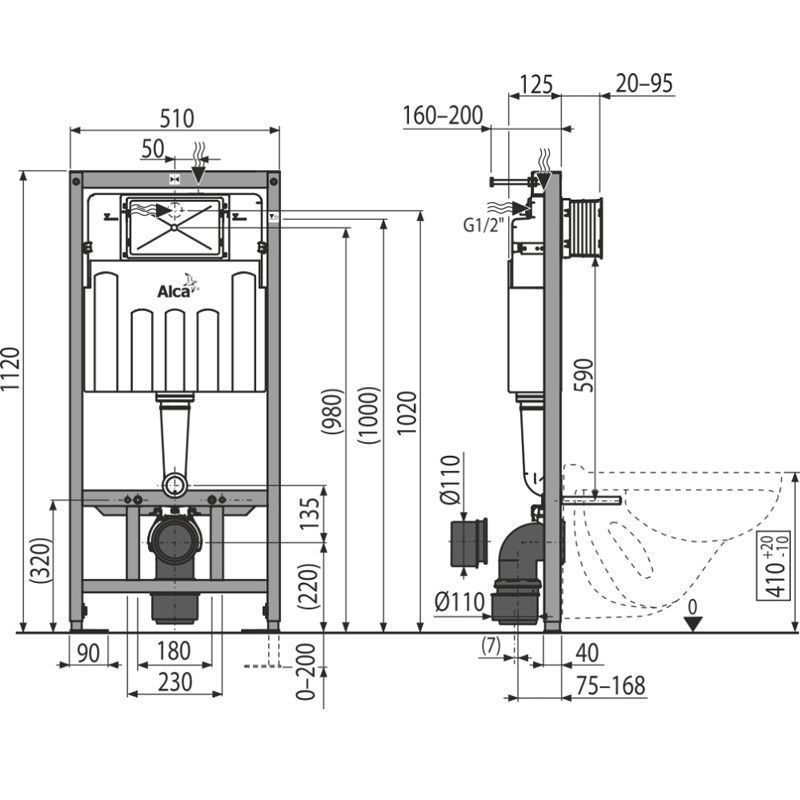 —Alcadrain Скрытая система инсталляции для сухой установки, высота монтажа 1,12 м AM101/1120-0001