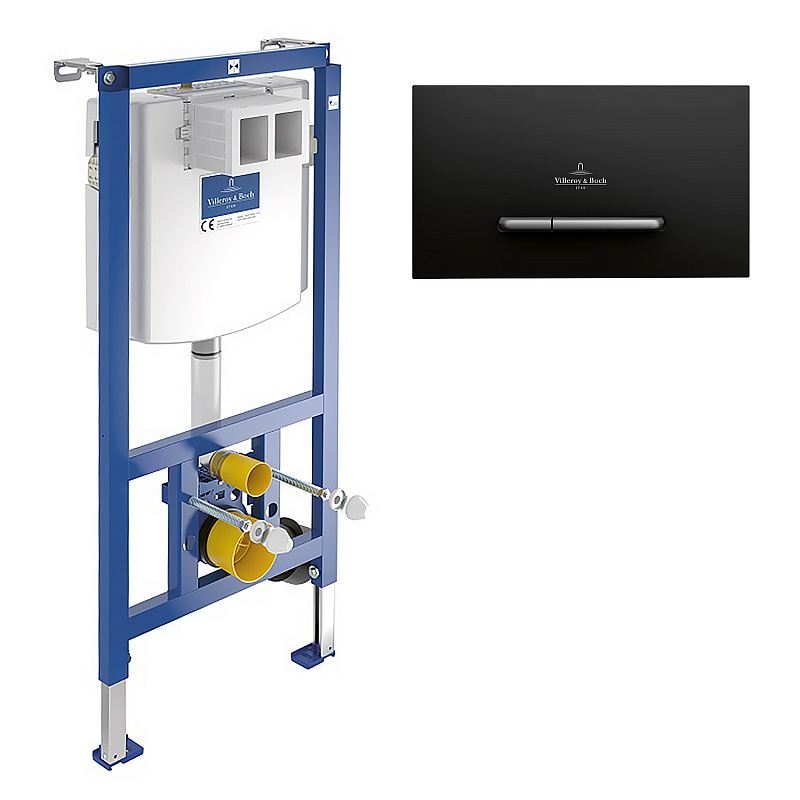 Сет: V&B Инсталляция для подвесного унитаза+ViConnect 300S Kлавиша смыва с 2 объемами, черный матовый (92246100+922169AN)