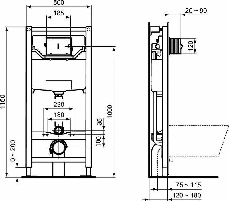 Встраиваемая инсталляция Ideal Standard PROSYS FRAME 120 M, для монтажа подвесных унитазов