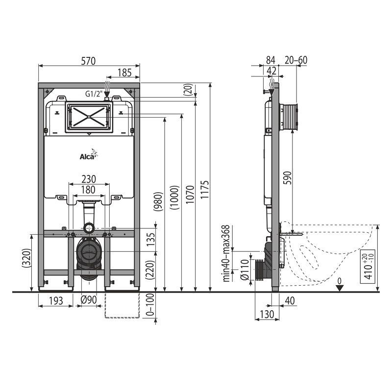Скрытая система инсталляции Alcadrain Sádroмodul Sliм, для сухой установки (для гипсокартона)