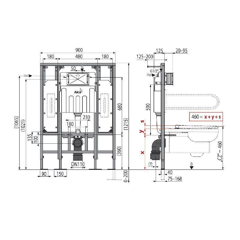 Скрытая система инсталляции Alcadrain для сухой установки (для гипсокартона), для людей с ограниченными физическими возможностями