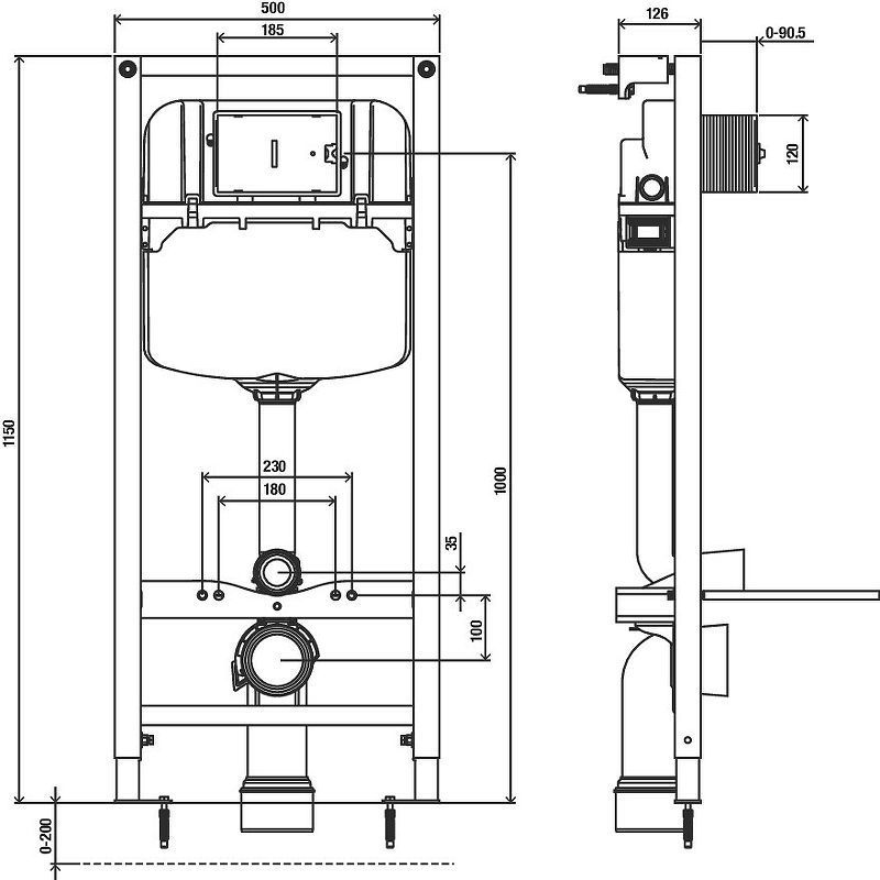 Регулируемая высота ножек: 0 до 200 мм.