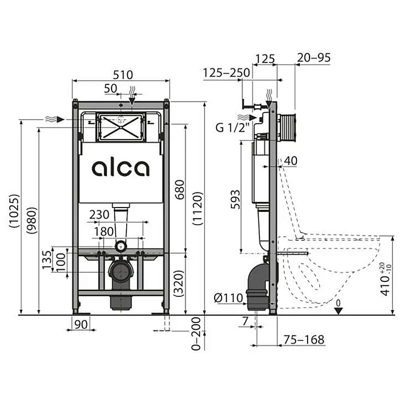 Set Инсталляции AM101/1120-4:1 RU с кнопкой M571 хром глянец + M91