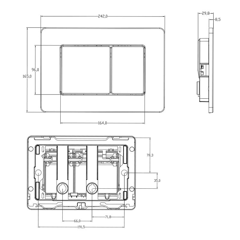 —Кнопка смыва AZARIO NEW-TS механическая, двойной смыв, квадратные кнопки, нержавеющая сталь 304, черный (AZ-SS-003-B)