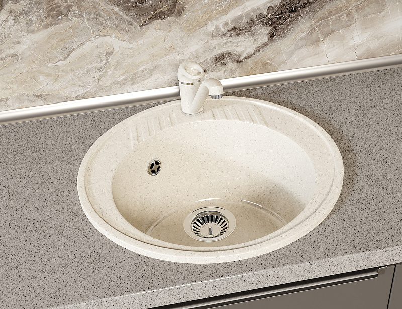Кухонная мойка AZARIO Solo 505x505x190 искусственный мрамор, сифон в комплекте, цвет бежевый (CS00105232)