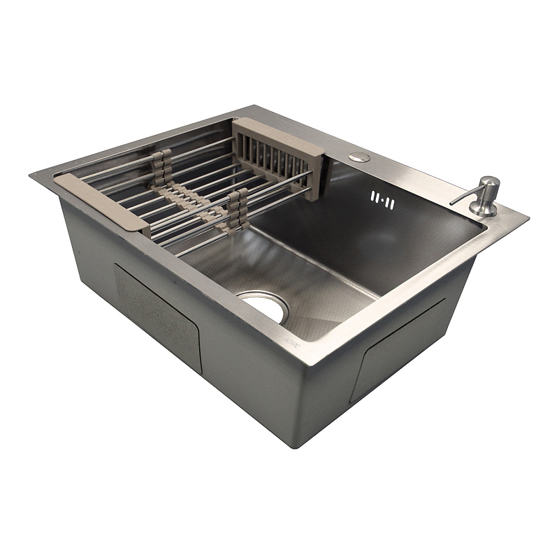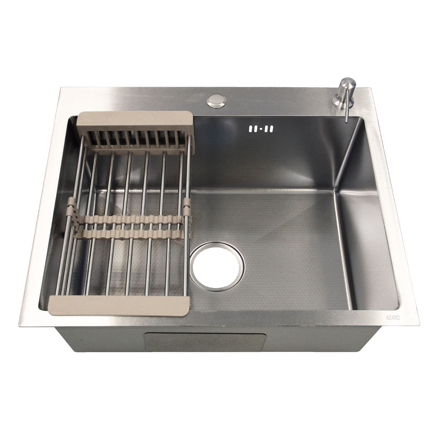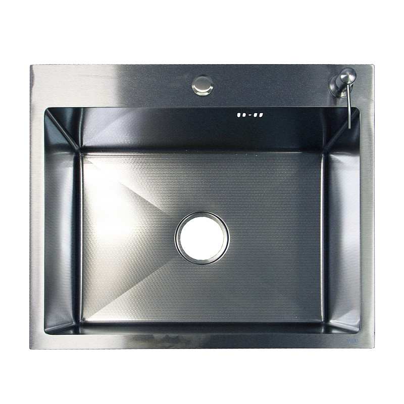 —Кухонная мойка AZARIO NICOLE 500х500х220 нержавеющая сталь, в комплекте сифон, диспенсер, коландер, серебро соты (AZS5050H)