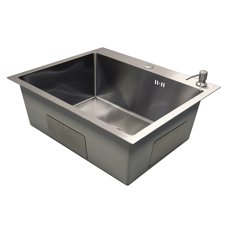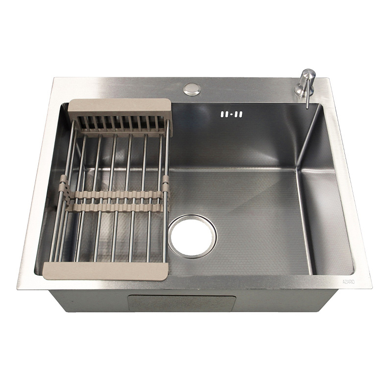 —Кухонная мойка AZARIO NICOLE 600х500х220 нержавеющая сталь, в комплекте сифон, диспенсер,коландер, серебро соты (AZS6050H)