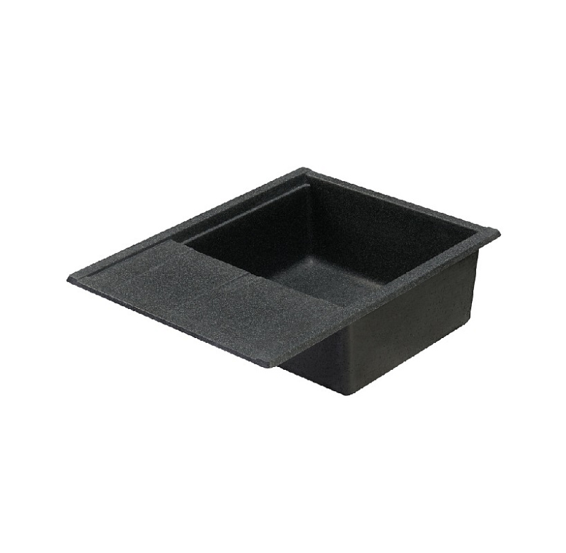 Кухонная мойка из литого мрамора в современном минималистичном дизайне с увеличенной глубокой чашей и дополнительным акссесуаром - решеткой из нержавеющей стали.